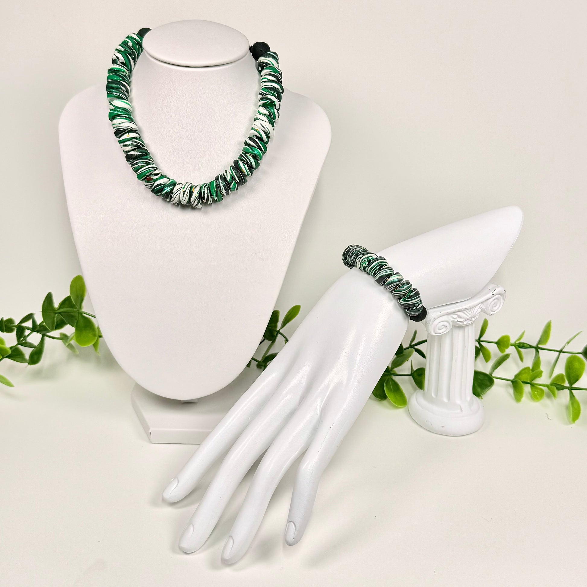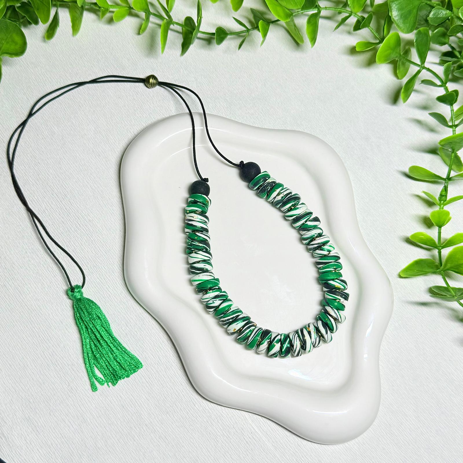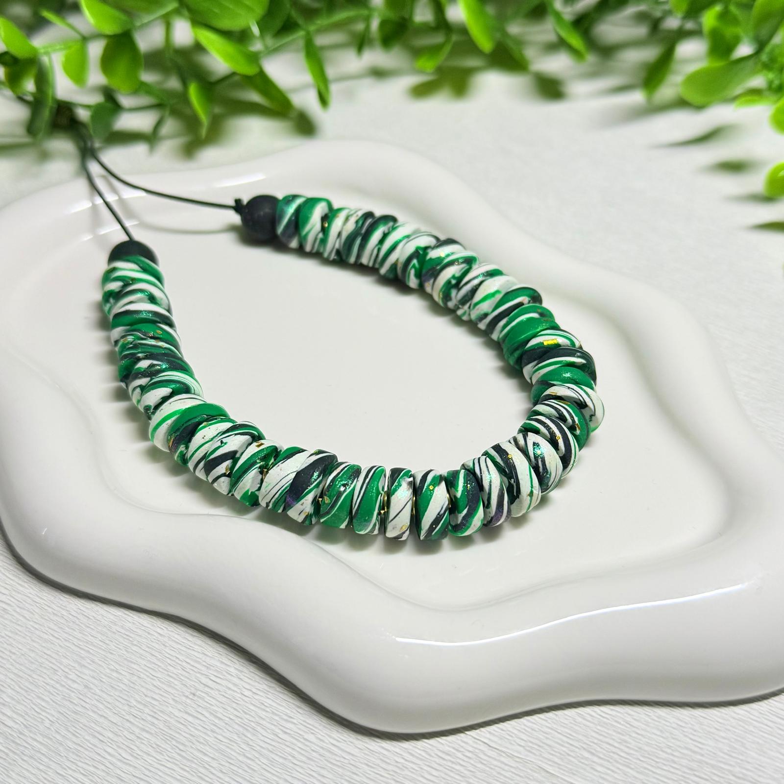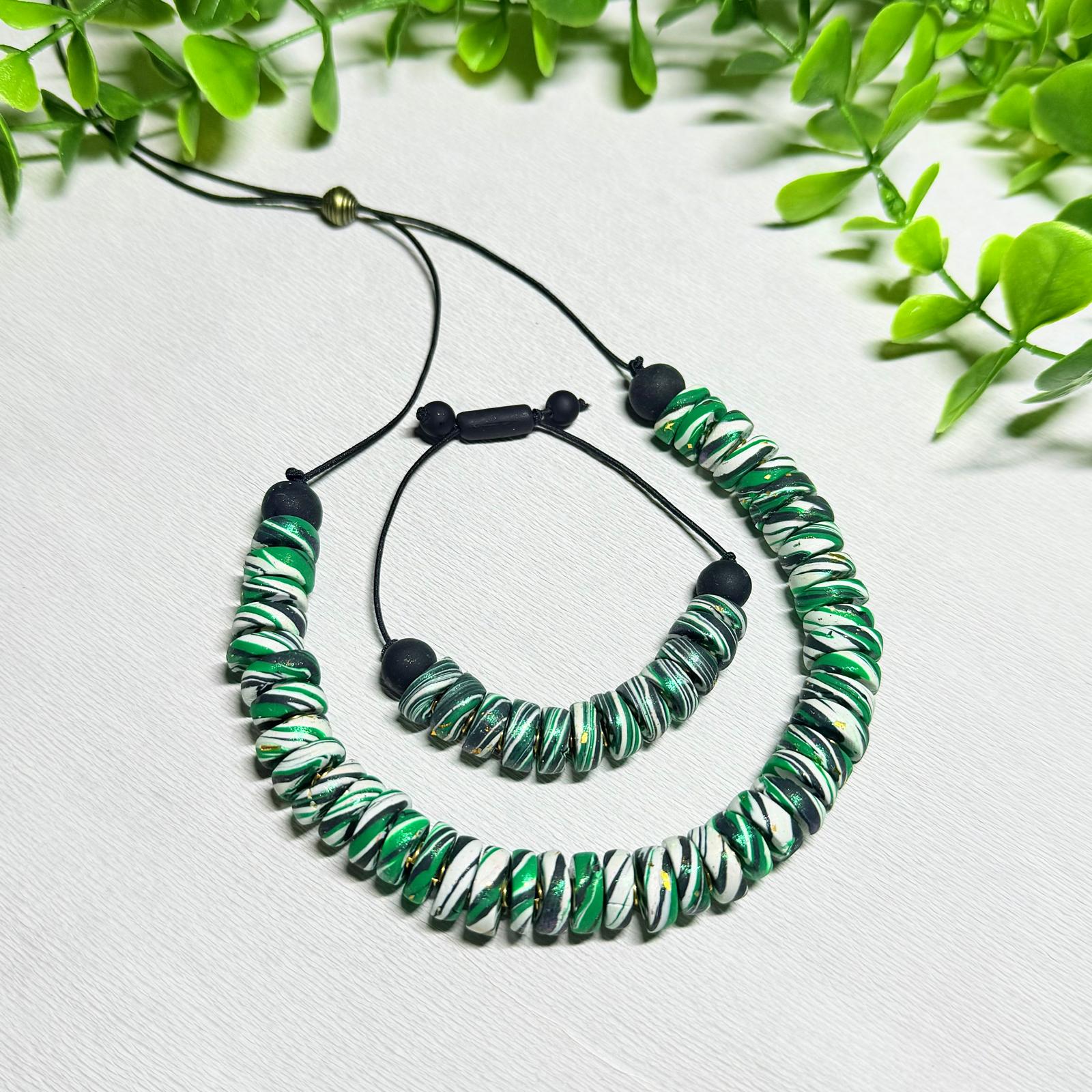 The Emerald Green Galaxy Polymer Clay Beaded Set includes a comfortable, adjustable necklace and bracelet designed to fit you perfectly. Each bead is carefully crafted with a beautiful emerald green galaxy pattern, adding a unique touch to your everyday look. Lightweight and durable, this set is easy to wear and pairs well with many styles, making it a wonderful addition to your jewelry collection.