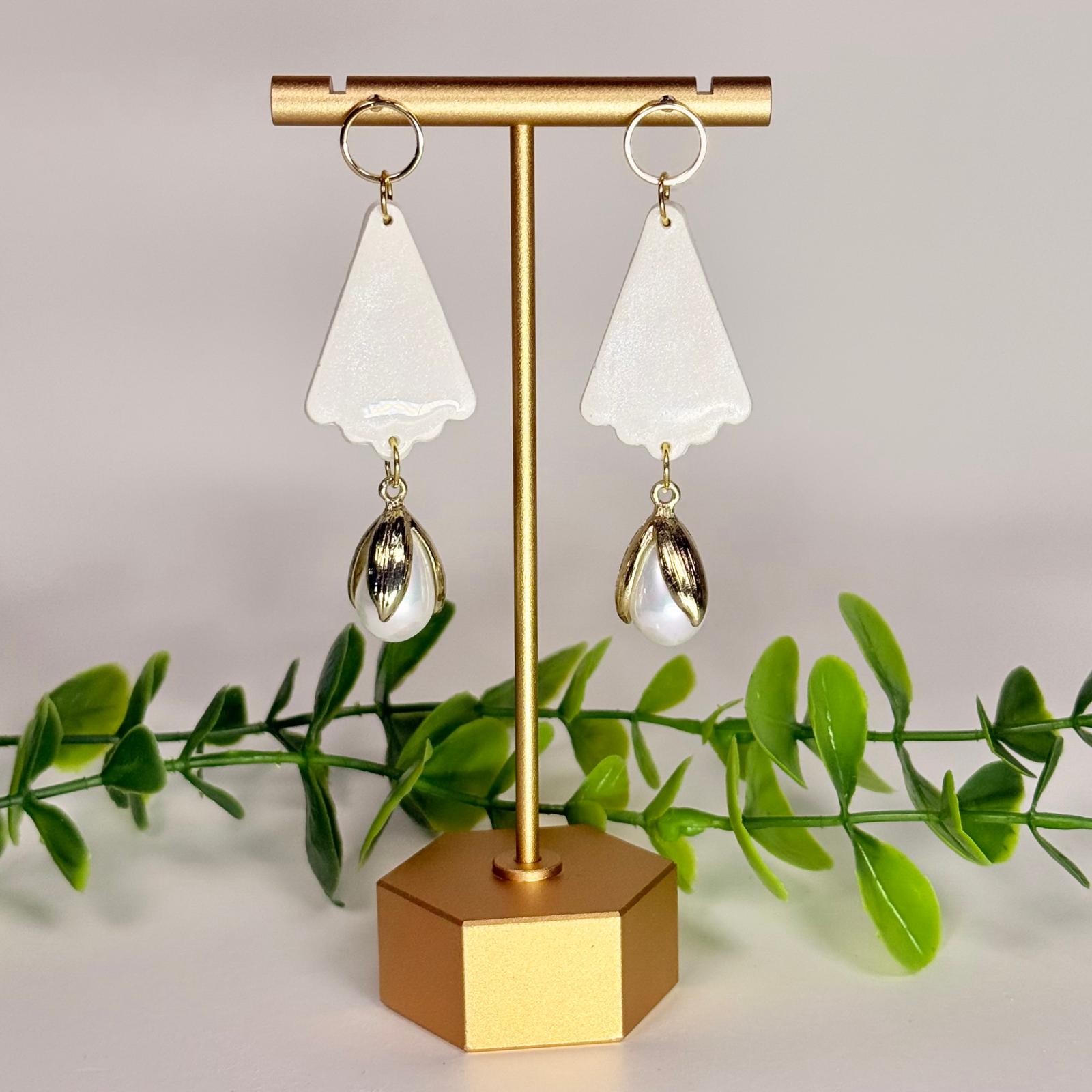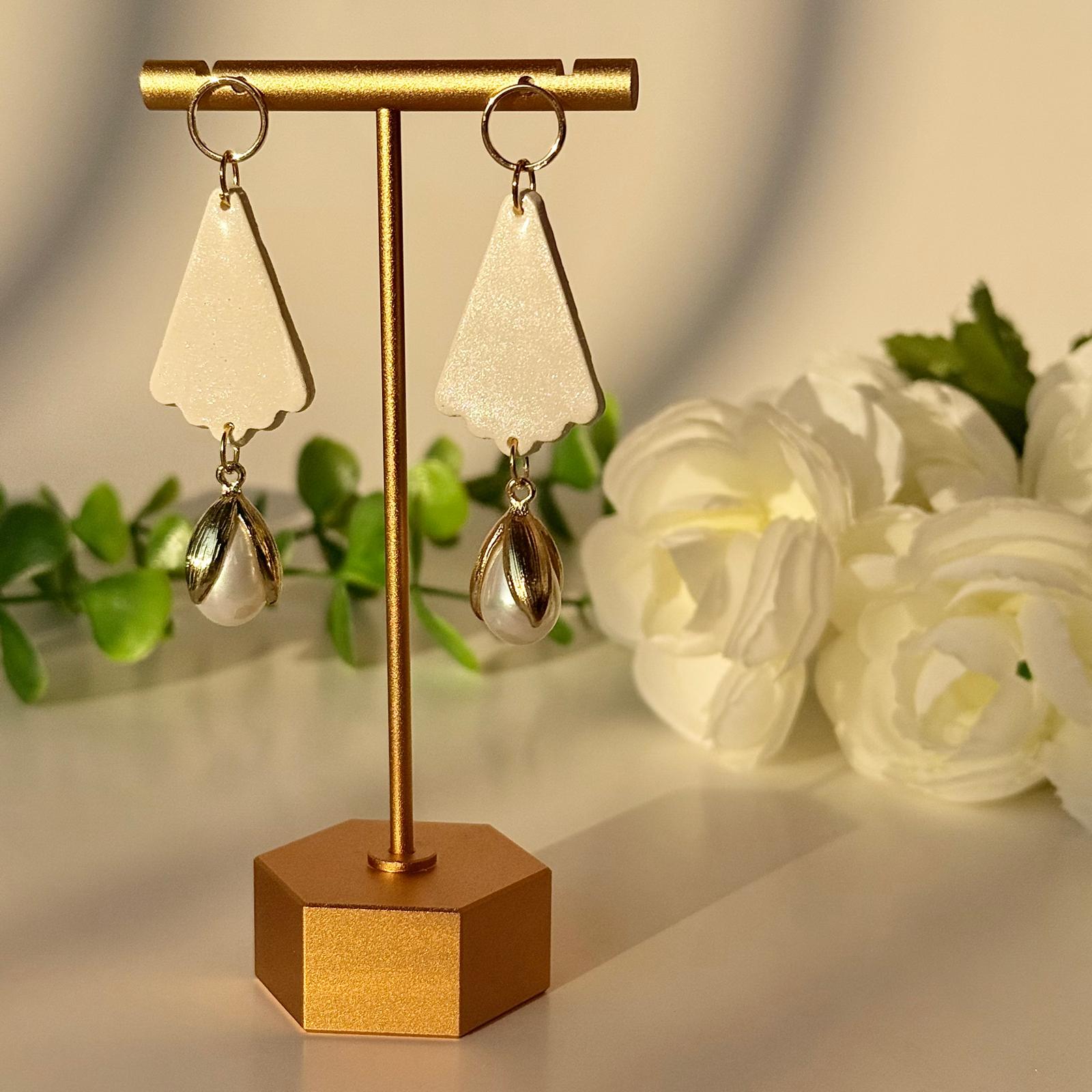 Elevate your style with the Moonlit Pearl Dangle Earrings, expertly crafted from lightweight polymer clay. Their graceful design and shimmering pearl accents capture the enchanting beauty of moonlight, adding a touch of elegance to any outfit. Perfect for both everyday wear and special occasions, these earrings provide effortless charm and a unique statement piece.