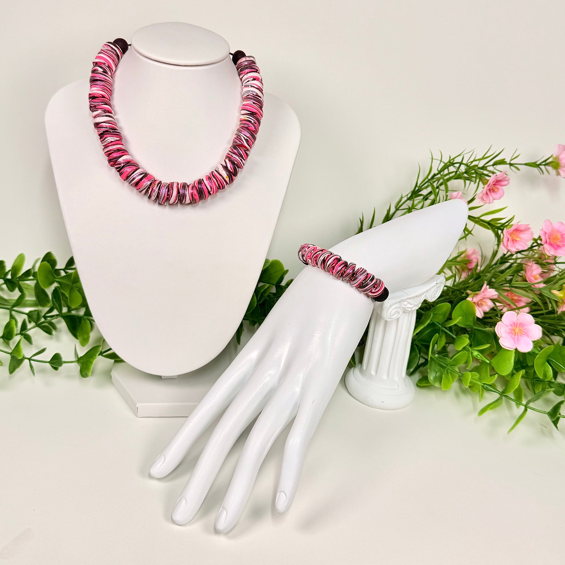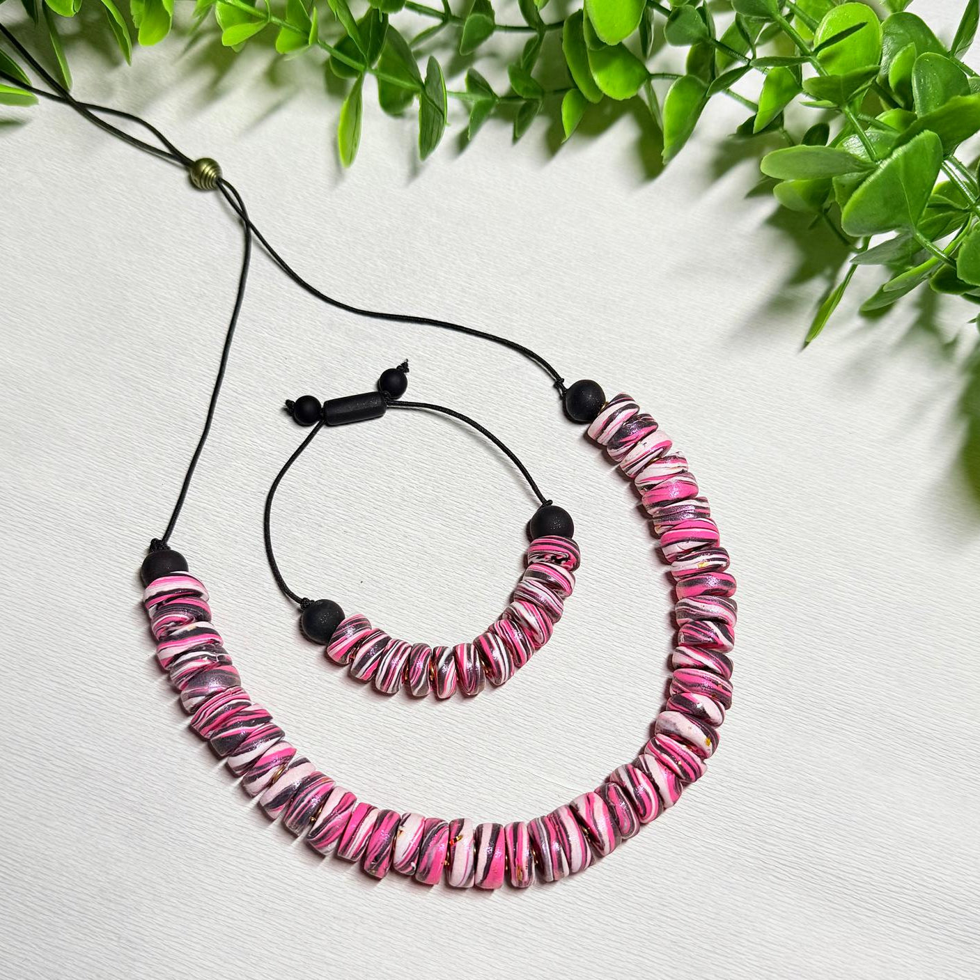 Brighten your look with the Pink Galaxy Polymer Clay Beaded Set! Featuring an adjustable necklace and bracelet, this set combines vibrant pink hues with a cosmic swirl design for a fun, playful vibe. Perfect for adding a cheerful touch to any outfit, these lightweight pieces are as comfortable as they are eye-catching.