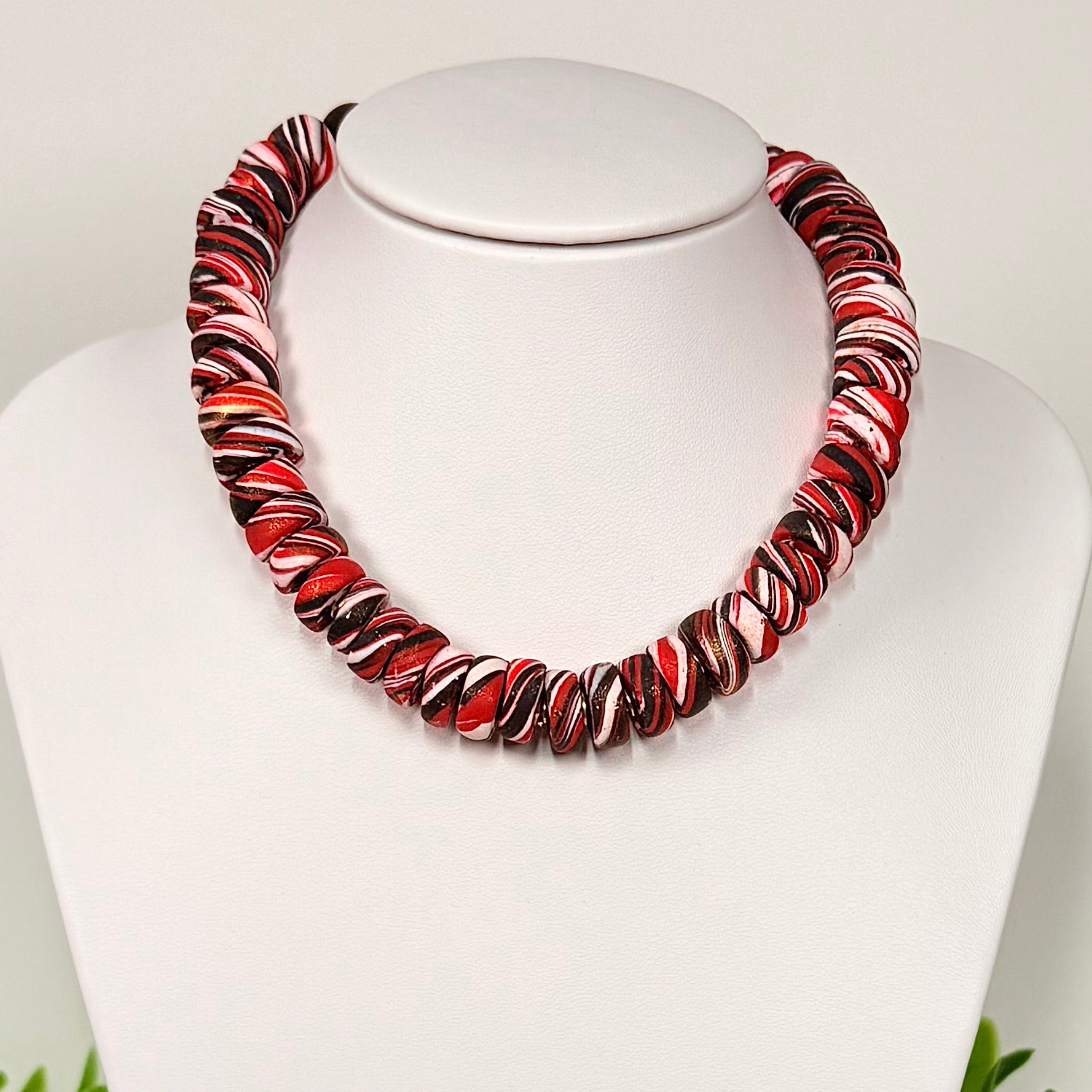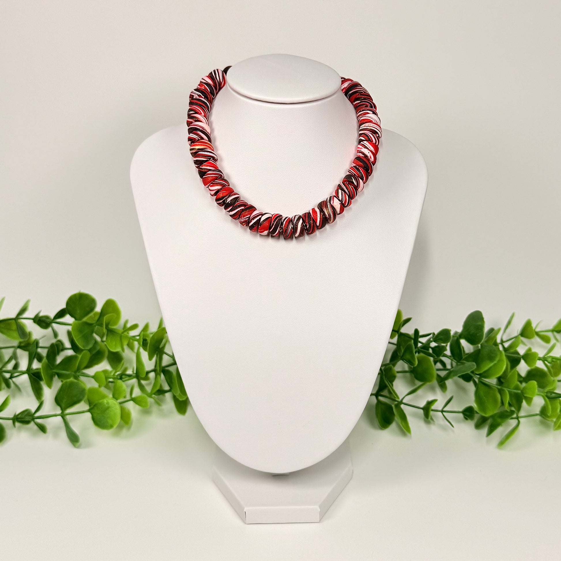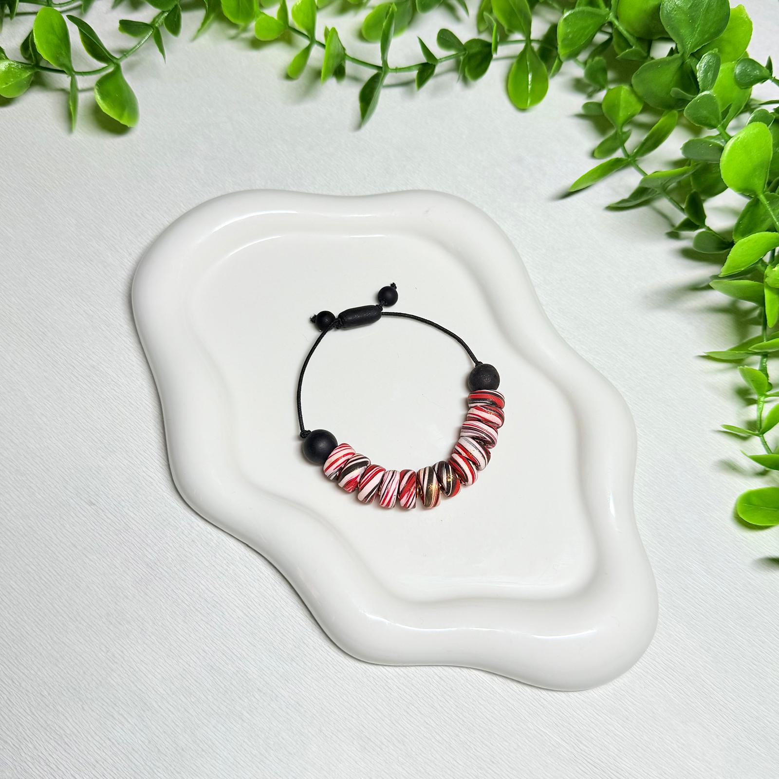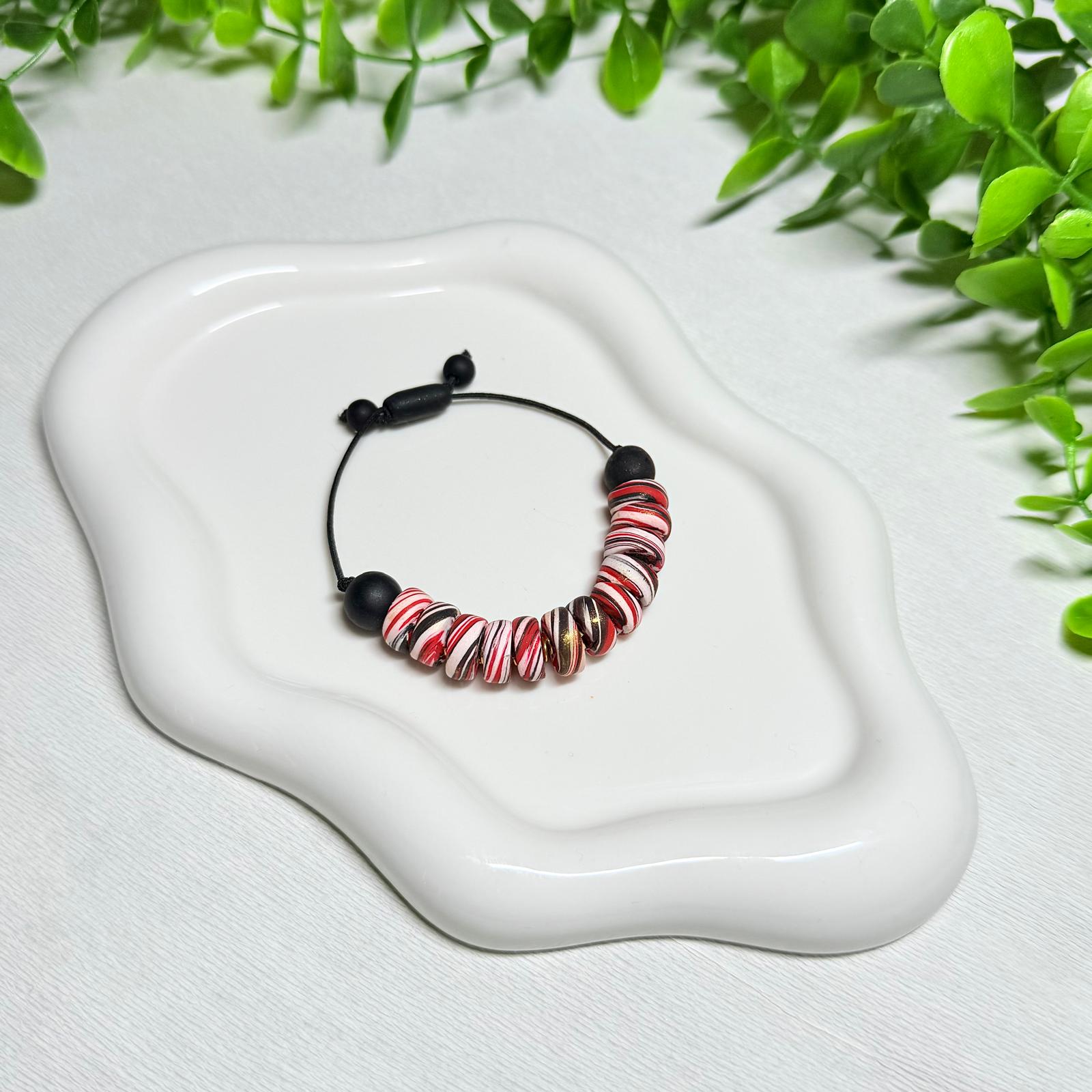 Brighten your look with the Ruby Red Galaxy Polymer Clay Beaded Set! Featuring an adjustable necklace and bracelet, this set combines vibrant red beads with a fun galaxy-inspired design.