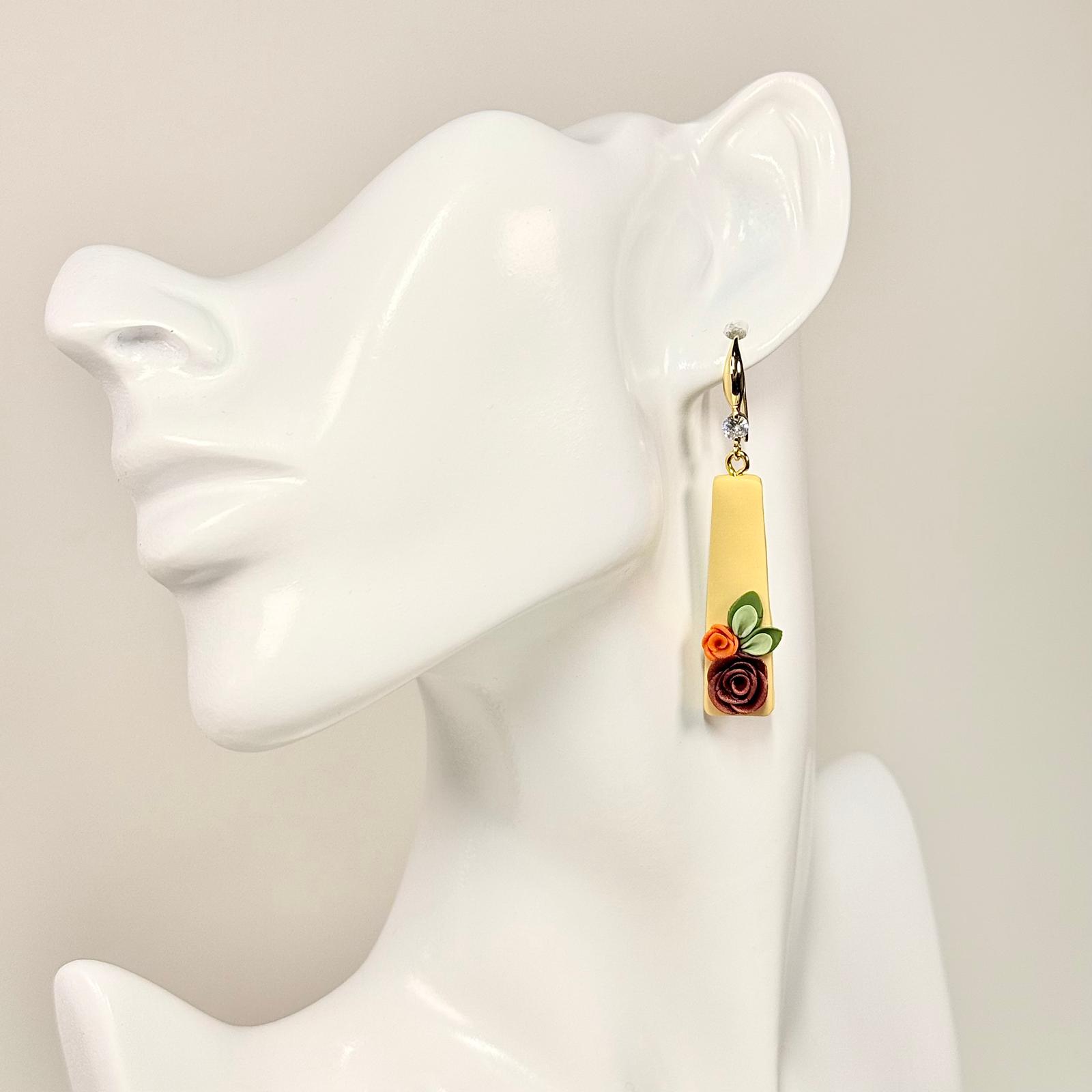 Embrace the beauty of untamed elegance with our Wild Rosette Earrings. Handcrafted with care, these earrings feature delicate clay roses in warm earthy tones, set against a golden base that captures the glow of autumn light. Each petal and leaf is sculpted by hand, making every pair uniquely one-of-a-kind. Lightweight and effortlessly charming, the Wild Rosette Earrings are the perfect blend of nature and sophistication — ideal for a touch of warmth all year round.